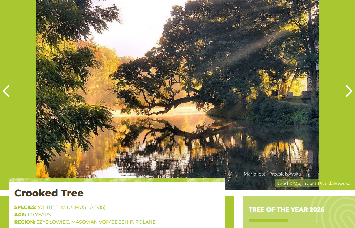 Już od dziś możemy zagłosować na najciekawsze europejskie drzewa 2026 roku. W organizowanym corocznie konkursie bierze udział dwanaście drzew z całej Europy, które zwyciężyły w konkursach krajowych. Polskę w tym roku reprezentuje Krzywe Drzewo w Szydłowcu, które zwyciężyło w polskiej edycji konkursu Drzewo Roku 2025 organizowanego przez Klubu Gaja. Ten niezwykły 110-letni wiąz szypułkowy pochyla się nisko nad fosą okalającą malowniczą wyspę, na której znajduje się zamek Szydłowieckich i Radziwiłłów. Jest jednym z ulubionych miejsc mieszkańców, fotografów i zamkowych kaczek. O tym, które z drzew zostanie Europejskim Drzewem Roku 2026 zadecydują internauci. Zachęcamy do oddawania głosów na polskie drzewo – https://www.treeoftheyear.org/vote/crooked-tree