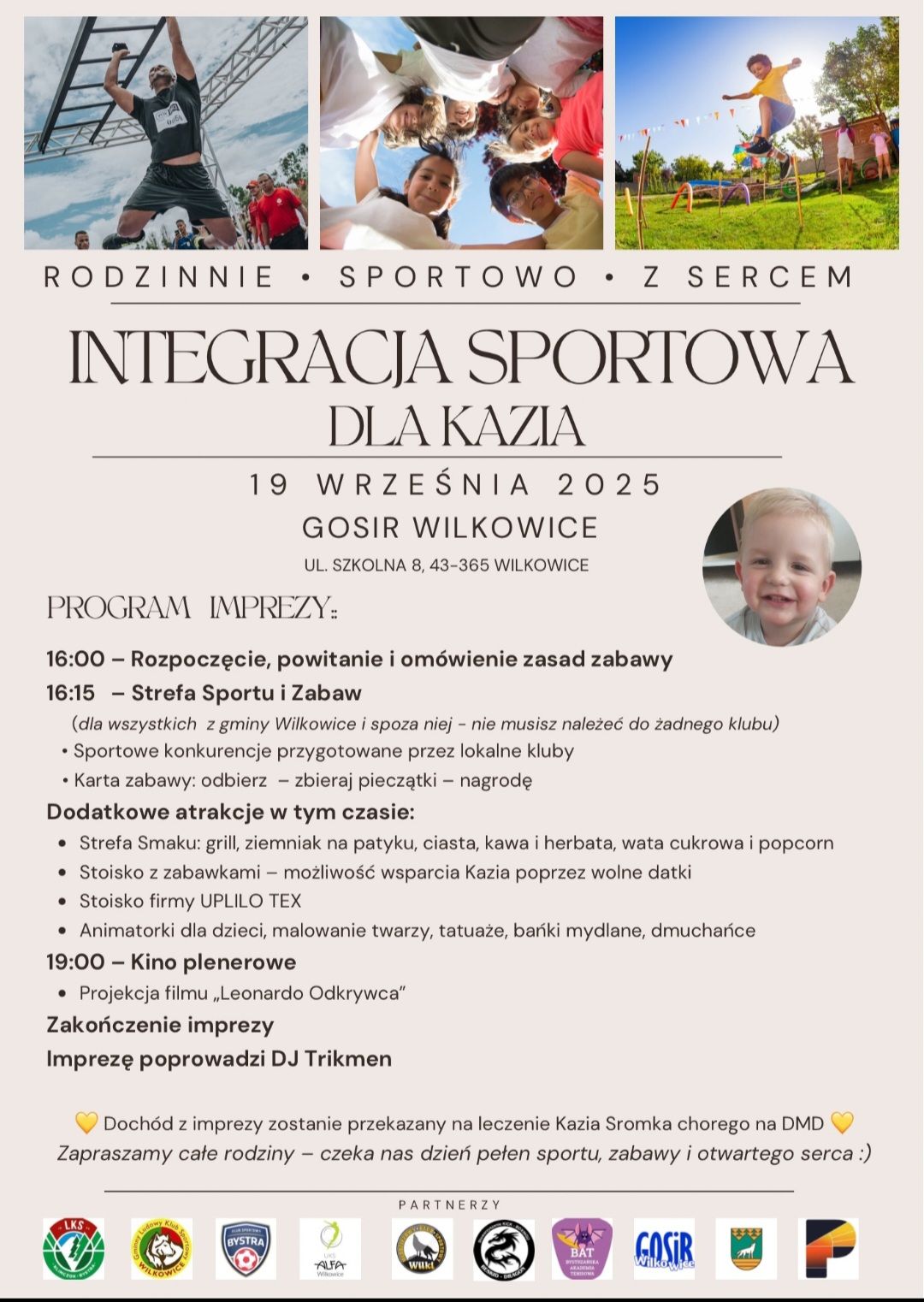 Serdecznie zapraszamy całe rodziny na dzień pełen sportu, radości i wsparcia dla Kazia!