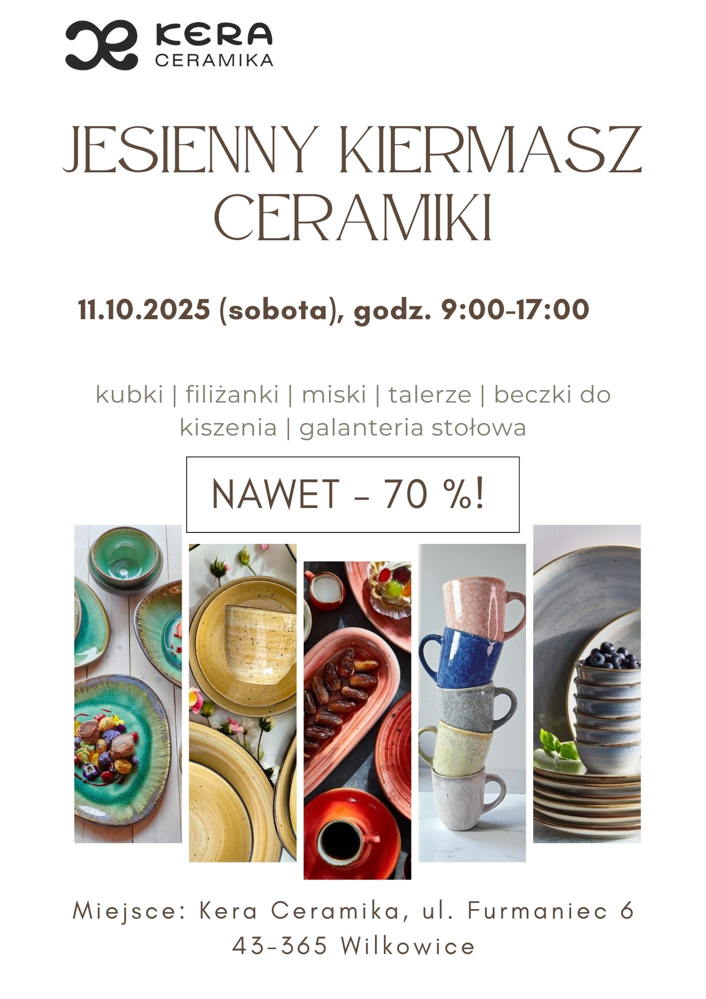 Zapraszamy serdecznie na Jesienny Kiermasz Ceramiki, który odbędzie się w sobotę, 11 października 2025 roku,
